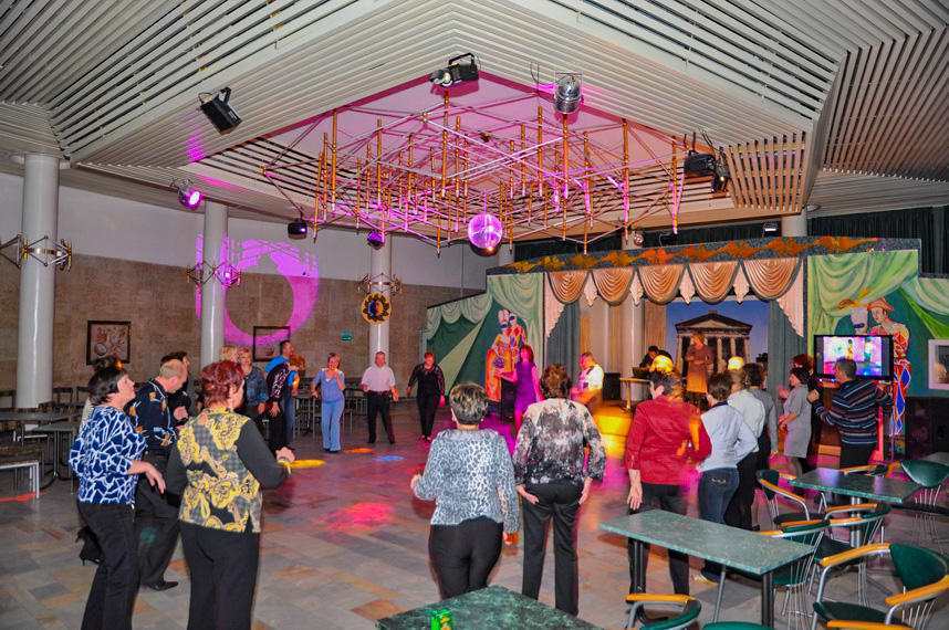 Танцевальные вечера здесь проводят ежедневно. В холодное время года мероприятие проходит в концертном зале. А летом танцплощадка расширяется и на территорию летнего кафе санатория. Современное акустическое оборудование и световое оформление создают соответствующий антураж и позволят вам раскрыть свой талант искреннего и изящного танцора. Помимо классических музыкальных программ здесь проводят и танцевально-игровые «Дискотеки с играми».